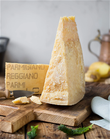 Roomsaus, ham, champignons en Parmezaanse kaas